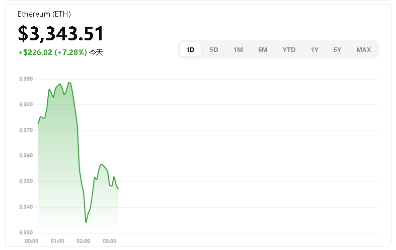 创 6 个月新高,曾涨逾 7% 一度触及 $ 3,422,当前约 $3,343 coingape.com +2 Mitrade +2 Investopedia +2 Indiatimes +6 CryptoRank +6 CryptoRank +6 The Economic Times +15 Mitrade +15 InvestingHaven +15。
