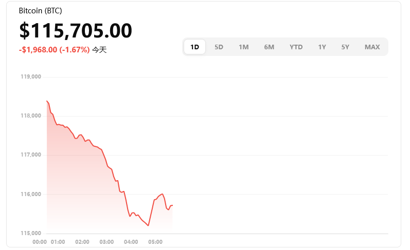 比特币虽略有回调,当前保持在 $ 118,655 左右,整体保持区间震荡格局,仍在近期 $118K 支撑线上方运行 icmarkets.com +3 changelly.com +3 FXStreet +3。