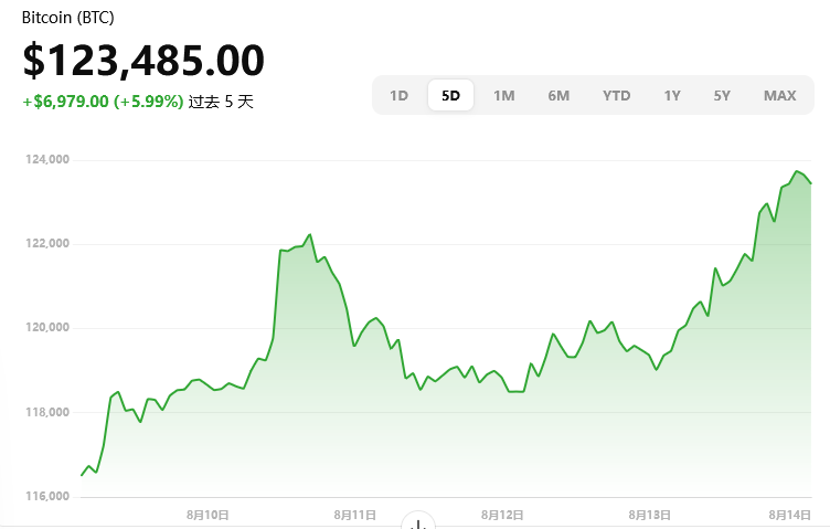 ** 当前价位**:约 $123,485,日内上涨约 3.46% 。