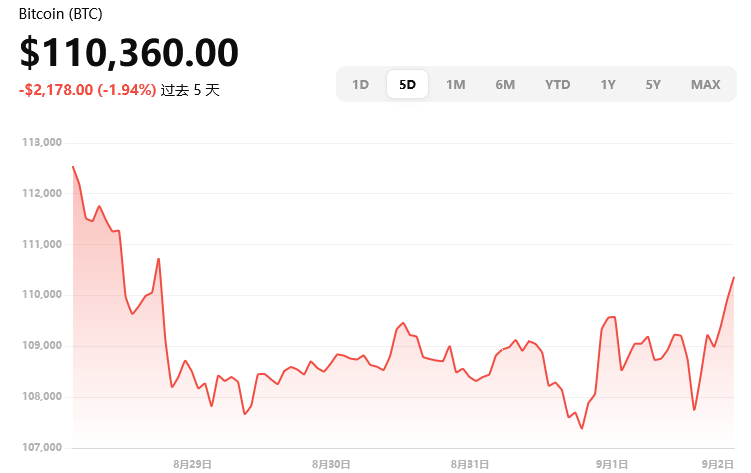 当前价格约 $110,360,日内上涨约 2.6%,盘中波动区间约在 $107K–$110K。