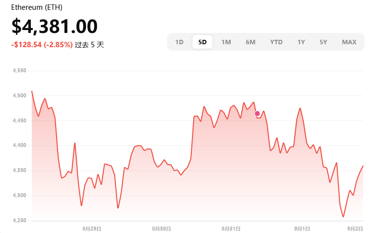 当前价格约 $4,381,日内略微回调,波动区间约在 $4,236–$4,487。