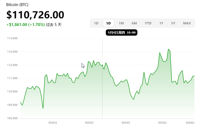 当前价位:约 $111,087,日内微跌,波动区间为 $110,294 – $113,237 。