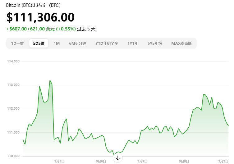 行情概览:比特币目前约 $111,306,日内上涨约 0.56%,高低波动区间为 $110,685–$112,866。